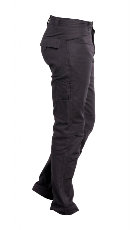 – Poche plaquée cuisse gauche rabat en biais fermé par 1 velcro caché + ganse