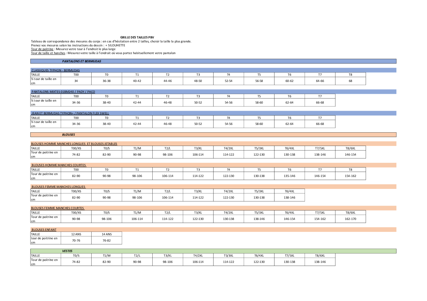 • Taille : 0, 1, 2, 3, 4, 5, 6, 7, 8