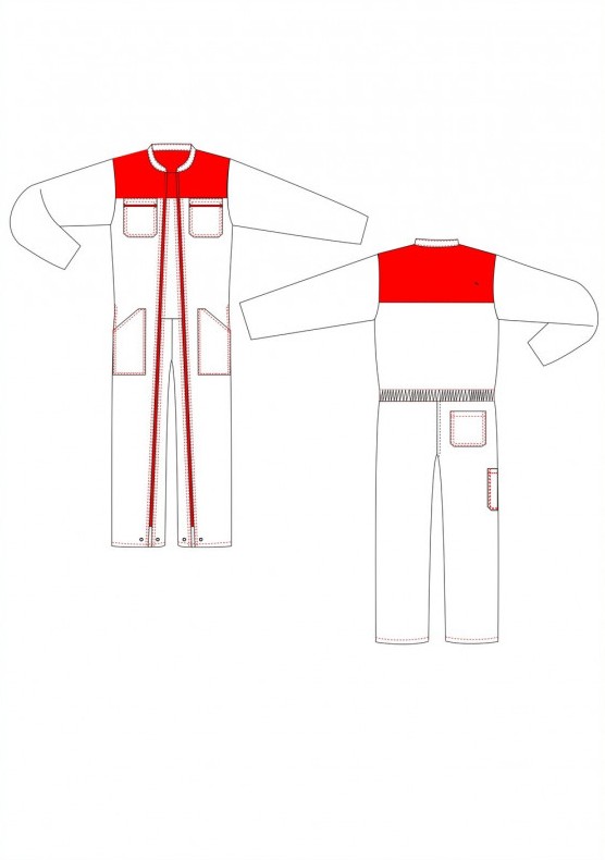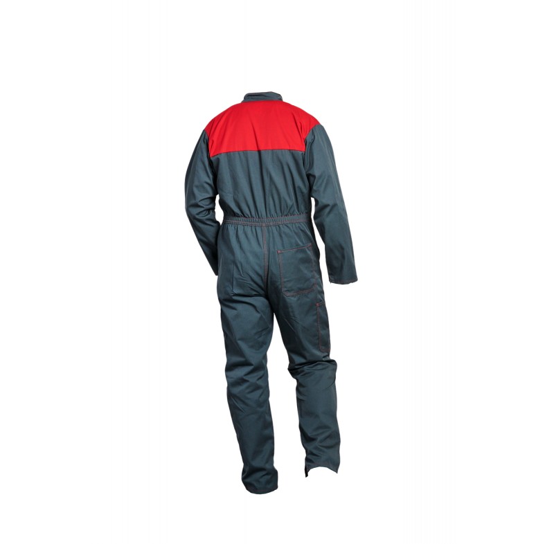 Combinaison avec double fermeture éclair en poly-coton de couleur vert et rouge.