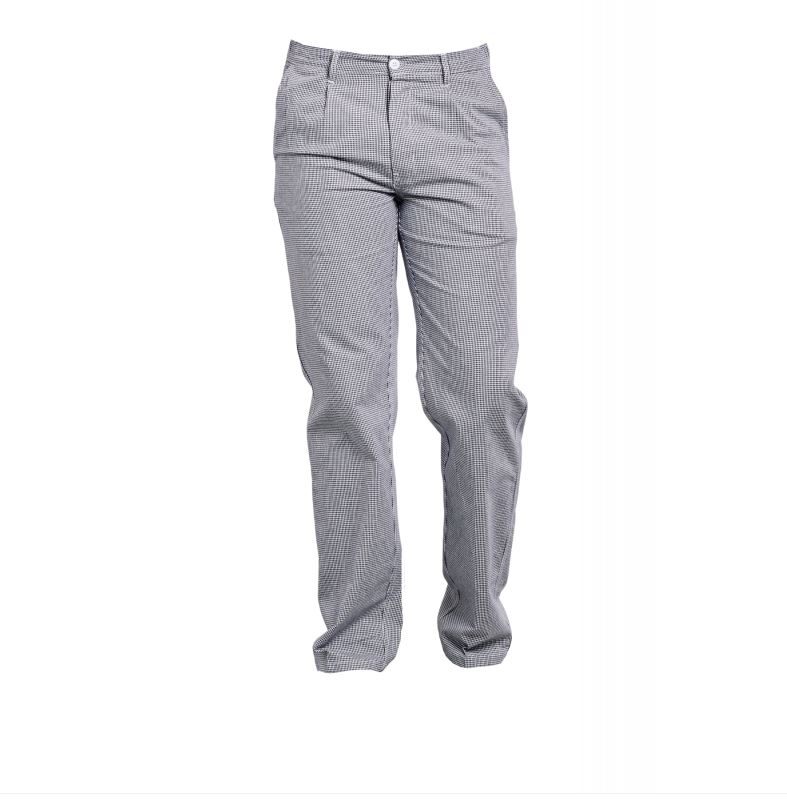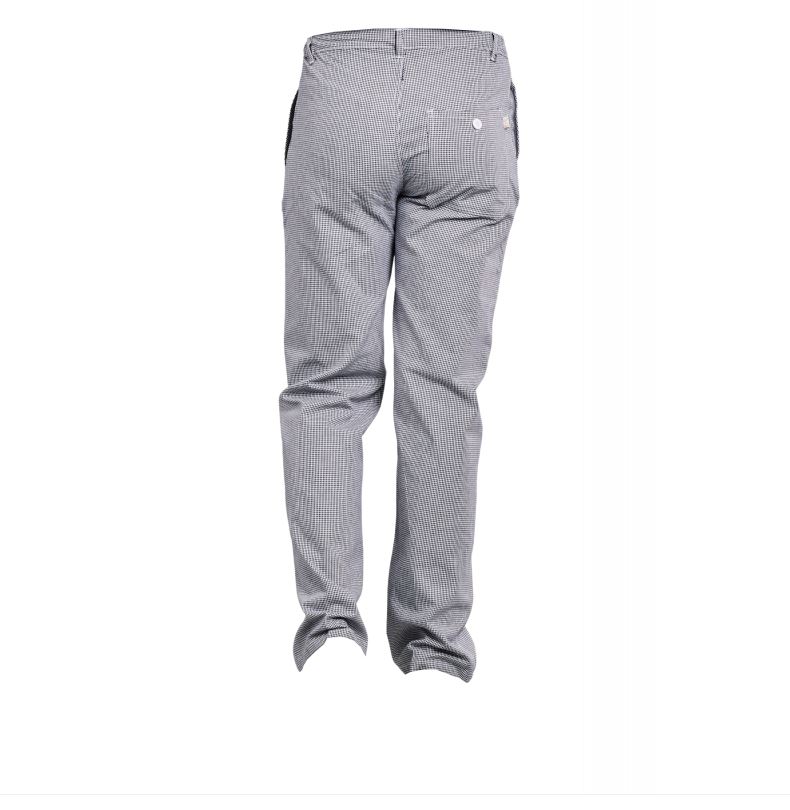 Pantalon de cuisine élastiqué en tissu coton et pied de poule.