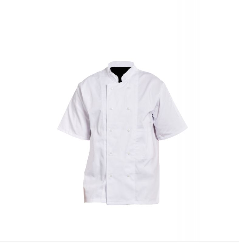 Veste de cuisine de couleur blanche avec manche longue et pression.