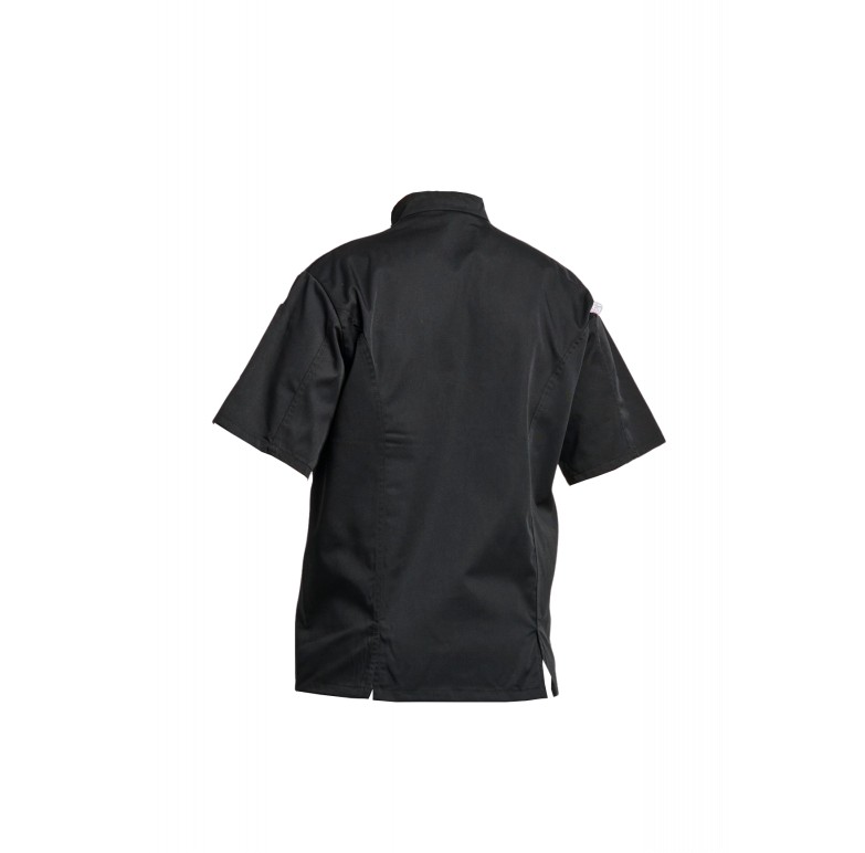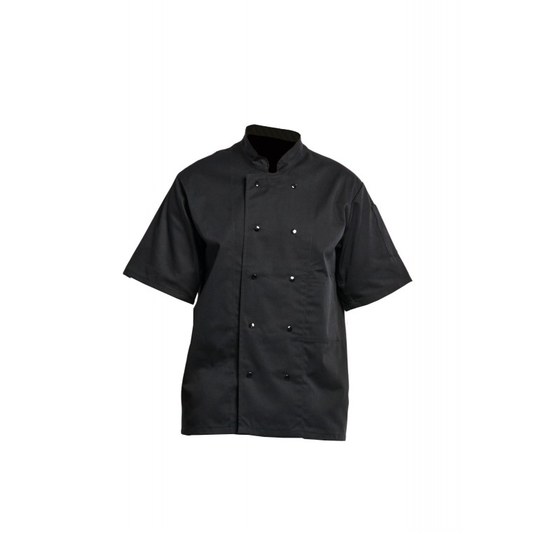Veste de cuisine manche courte poly-coton de couleur noir à pressions.