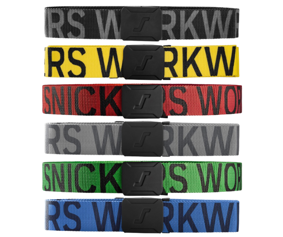 Ceinture robuste avec boucle métallique recouverte de caoutchouc et à la finition matte pour un toucher doux et une expression contemporaine élégante. Le logo Snickers Workwear imprimé sur la ceinture.
