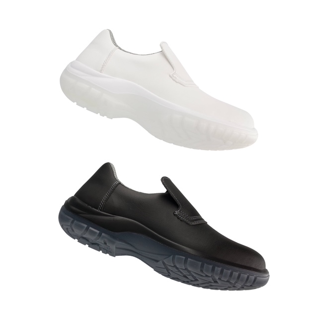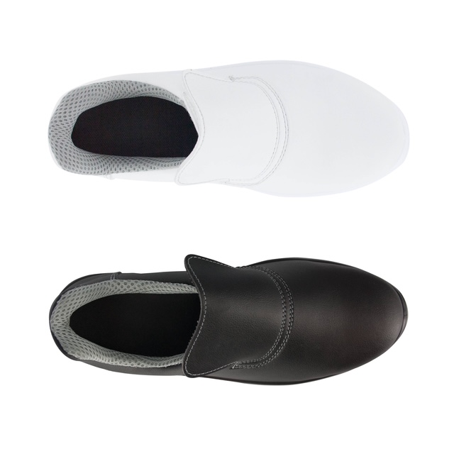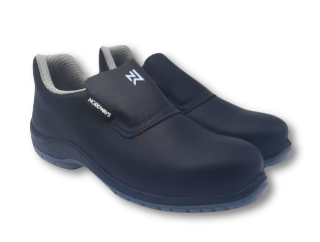 DAN EN ISO 20345 : 2011 S3 SRC, une chaussure de sécurité cuisine type mocassin adaptée aux métiers de l’agroalimentaire et de la restauration.