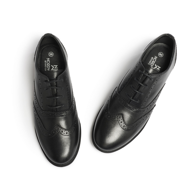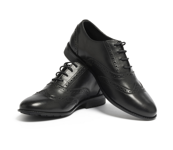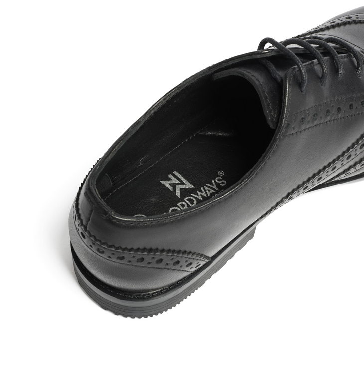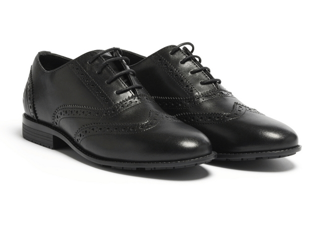 Chaussure de service derby antidérapante pour femme, en cuir micro-perforé.