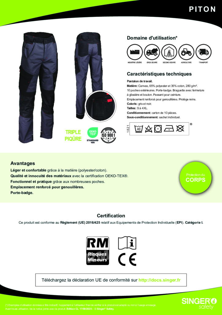Matière: Canvas, 65% polyester et 35% coton, 280 g/m².