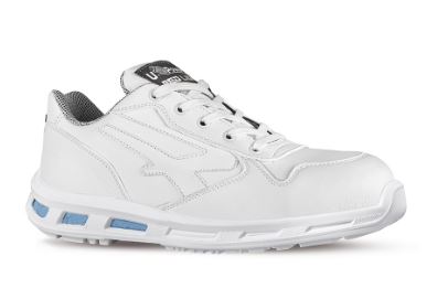 Chaussures de sécurité basses, légères et confortables U-Power de la ligne Red Lion, totalement « sans métal », blanches avec empeigne New safety dry, pointe composite, soufflet rembourré en nylon, hydrofuge, anti-dérapant et semelle PU / PU infinergy.
